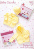 Which one will you choose to knit, we have a cardigan and hat or a cardigan with attached hood, why not knit all three. Knitted with yarn from the Baby Chunky range your baby will be snug and warm.