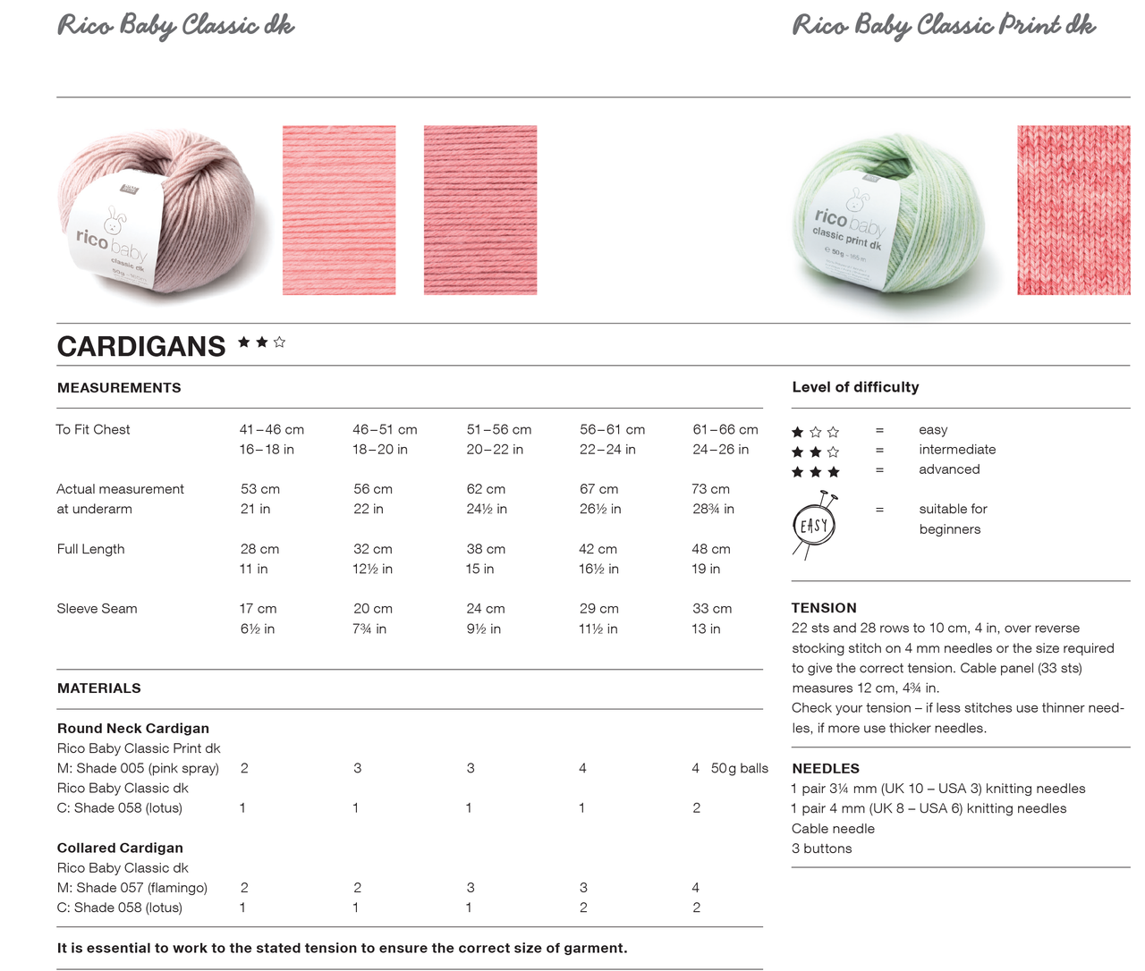 1 pair of 4.00mm (UK8 - USA6) Knitting Needles, 1 pair of 3.25mm (UK10 - USA3) Knitting Needles, Cable Needle, 3 Buttons.