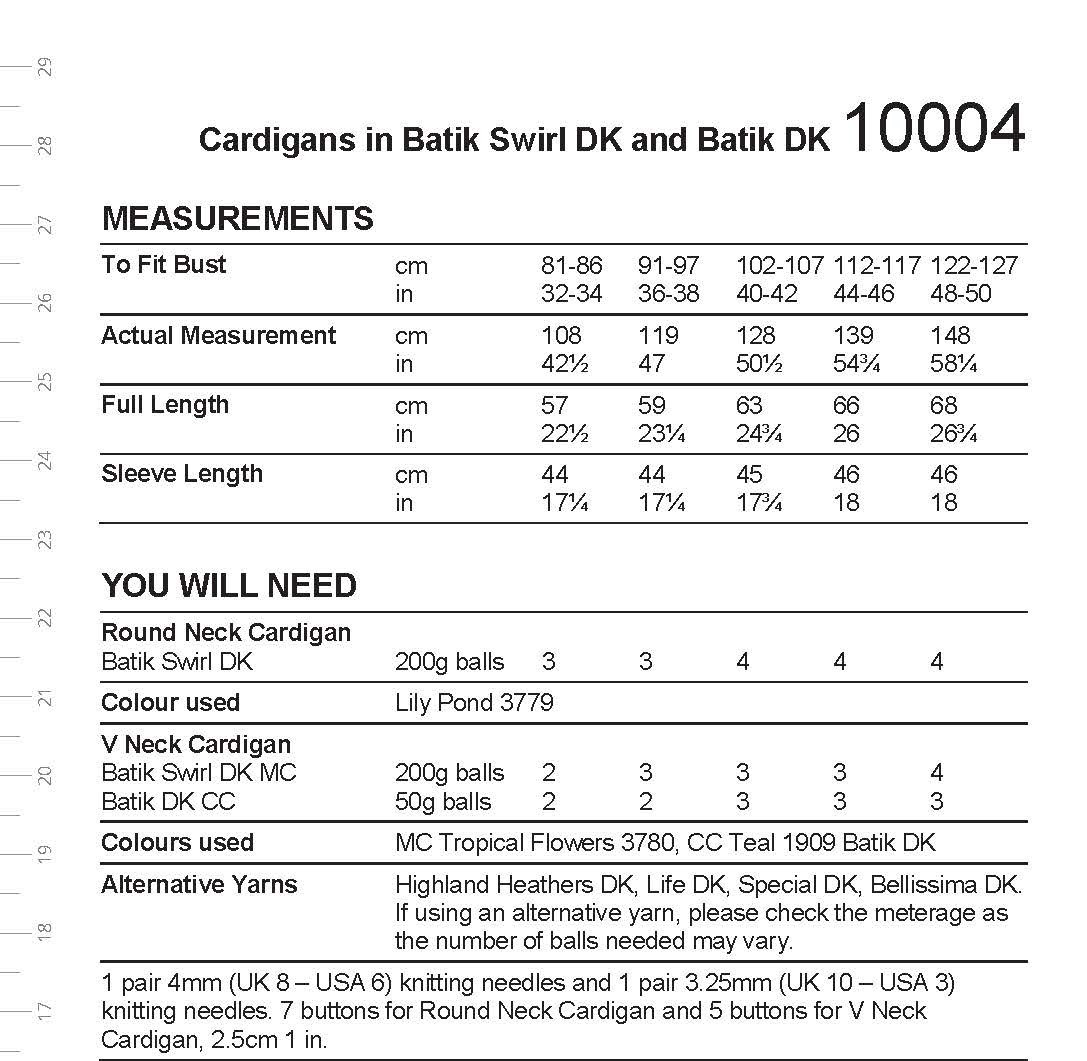You will also need:1 pair 4mm (UK 8 – USA 6) knitting needles and 1 pair 3.25mm (UK 10 – USA 3) knitting needles. 7 buttons for Round Neck… Read More