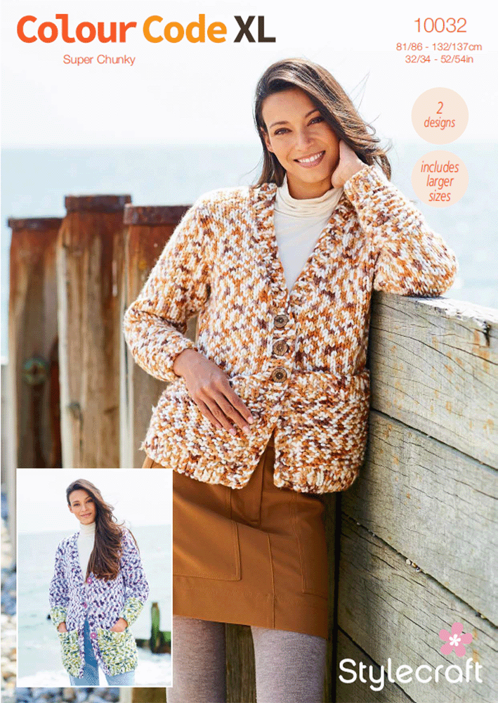Pockets are a girl’s best friend. These stocking stitch cardigans have big garter stitch pockets. The cuffs are also garter stitch which give a different texture. We just love the long two-tone cardigan for something a little different.