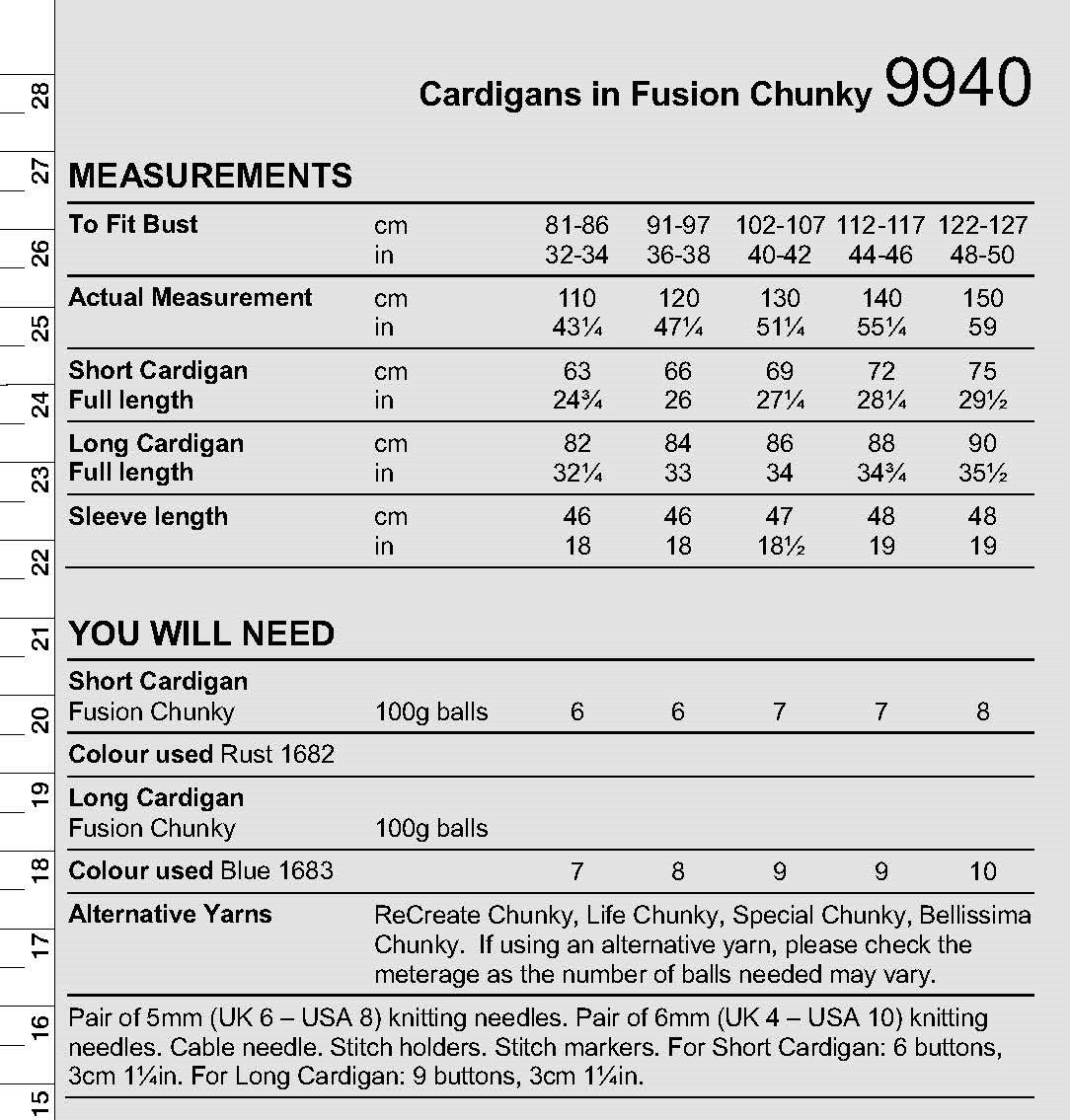 Pair of 5mm (UK 6 – U SA 8 ) knitting needles. Pair of 6mm (UK 4 – USA 10) knitting needles. Cable needle. Stitch holders. Stitch markers. For Short Cardigan: 6 buttons, 3cm 1¼in. For Long Cardigan: 9 buttons, 3cm 1¼in.