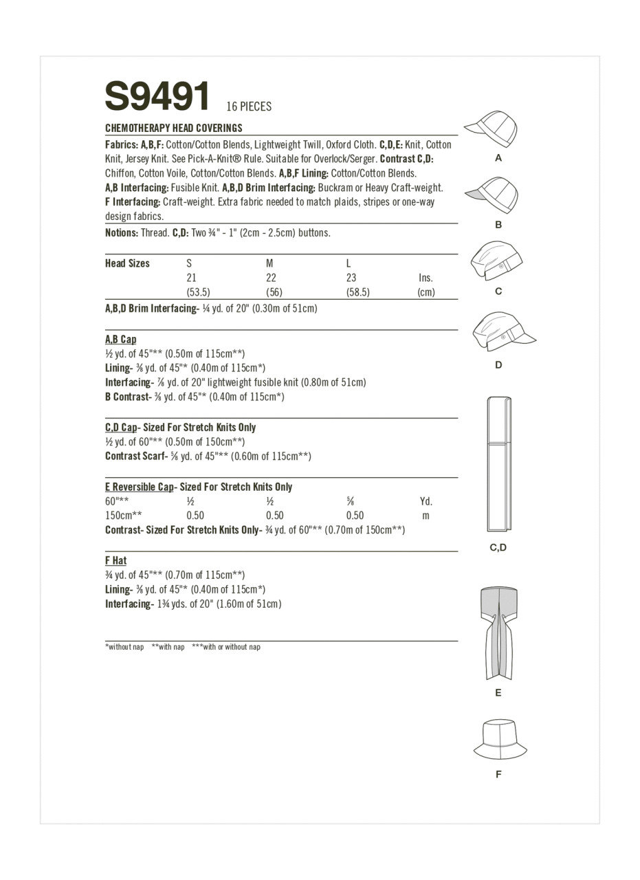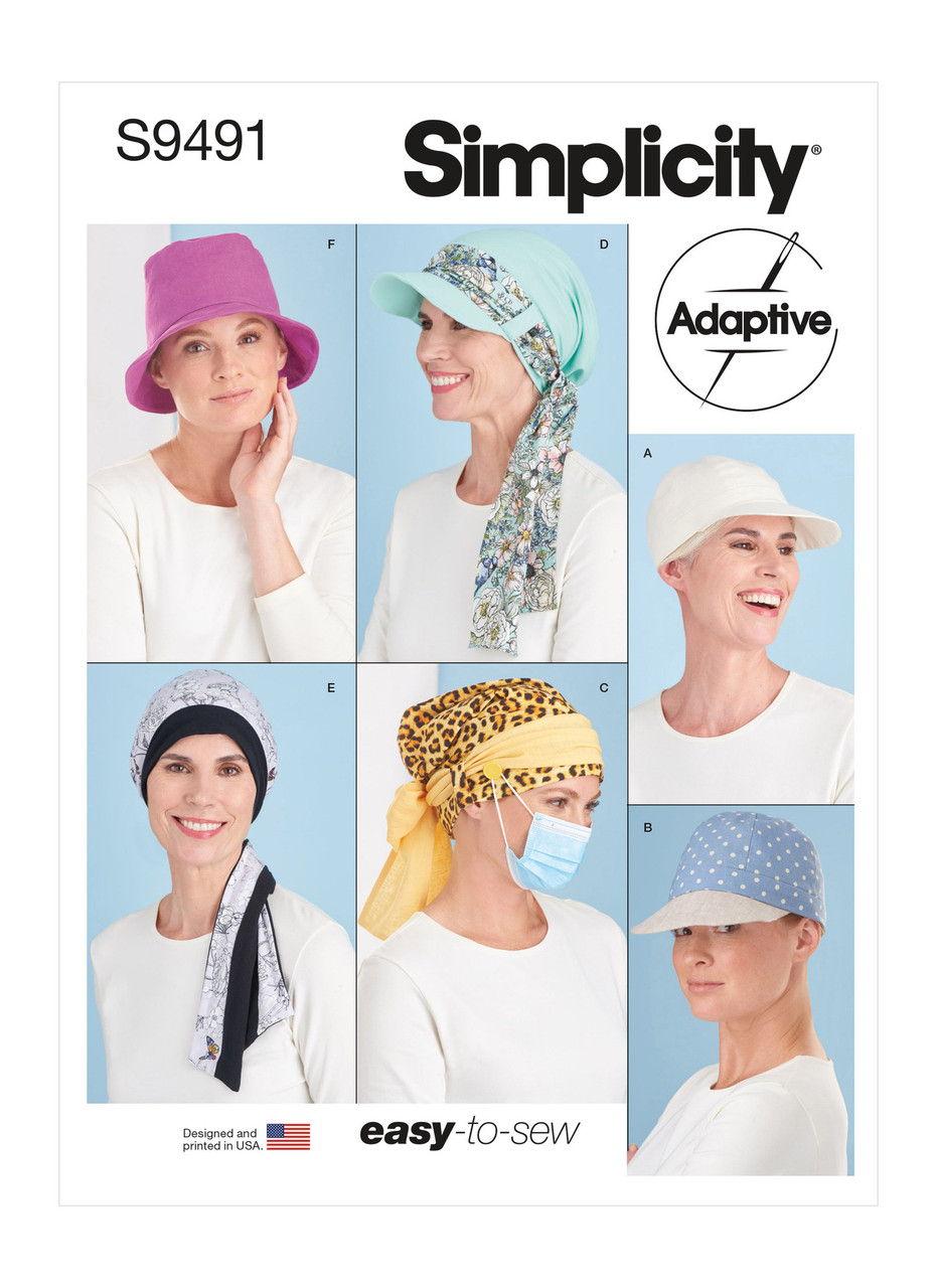 Casual and pretty lined chemo hats, offer full-head coverage to the natural hairline. Sew up several in different fabric weights for each season. Create multiple looks by tying the scarf in various ways. The side buttons are added to hold the elastic ear loops on a mask if needed. Hats are in sizes S, M, L.