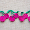 On the tropic of fruit, this Cherry Trim is the perfect summer embellishment! With a cartoonish appearance, it has a bright cerise pink/poppy red base while green vines sprout from its top. Bring your dirty boots, ripped denim, and whimsical crop top attire to the next level with this Electric Picnic worthy guipure lace trimming ideal for inspired festival headbands and other accessories. Great for juniors and children's wear.