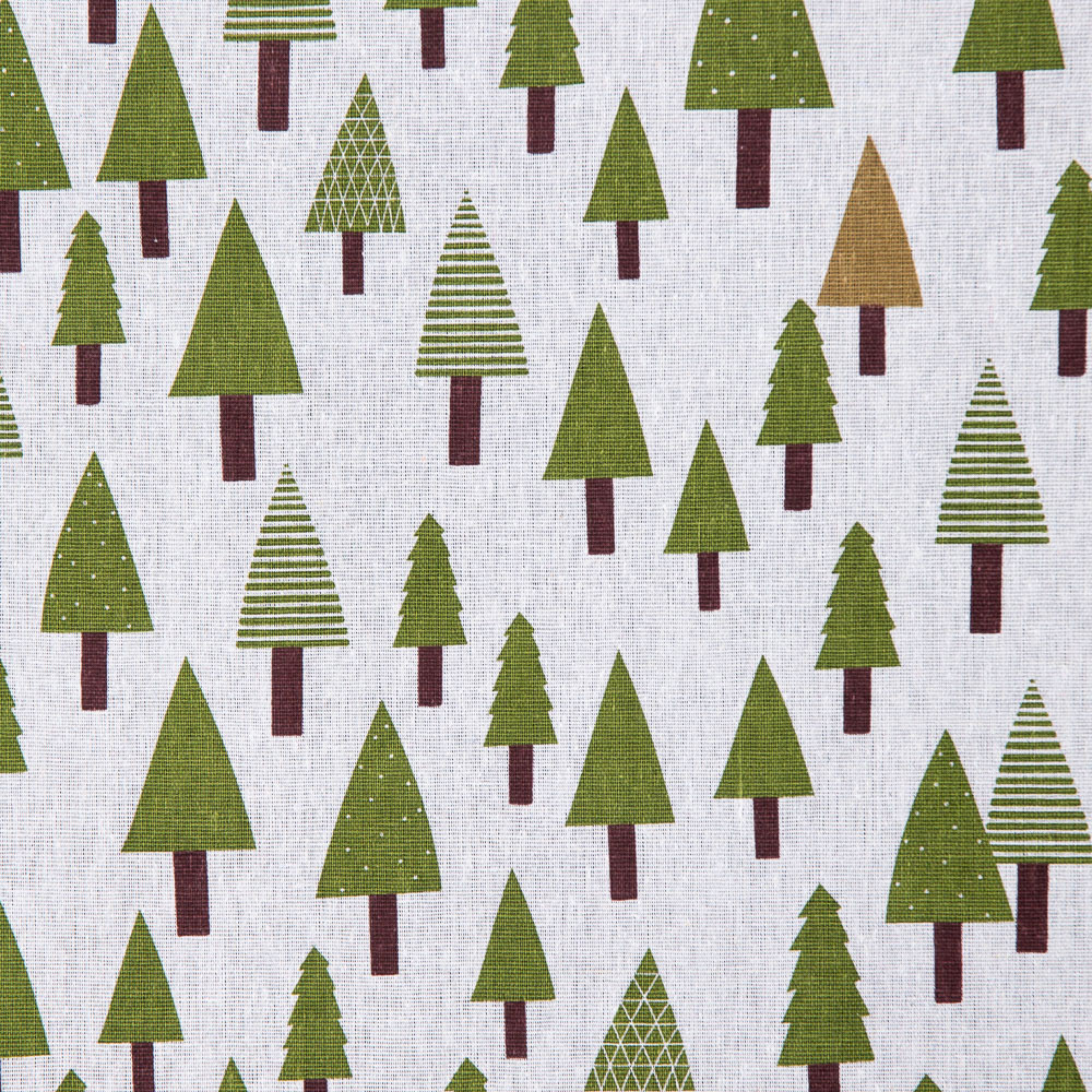 Classic green Christmas trees patterned on a white background. Christmas is of course a special time of the year for families and friends to come together in celebration. Let us help you add a touch of elegance to your Christmas decorations with our collection of high quality, 100% cotton Christmas fabrics. Perfect for simple projects such as tablecloths, aprons, Christmas stockings and even toys and crafts.