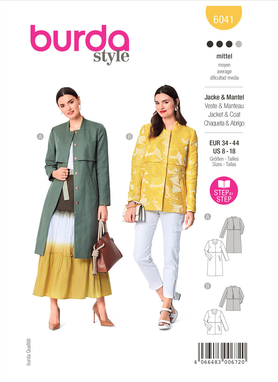Here we have a classic cut with a stand collar – it would look great made up in flannel. Choose an unusual fabric to go trendy as we did for jacket view B. However you go, this will be a piece to wear for years to come.