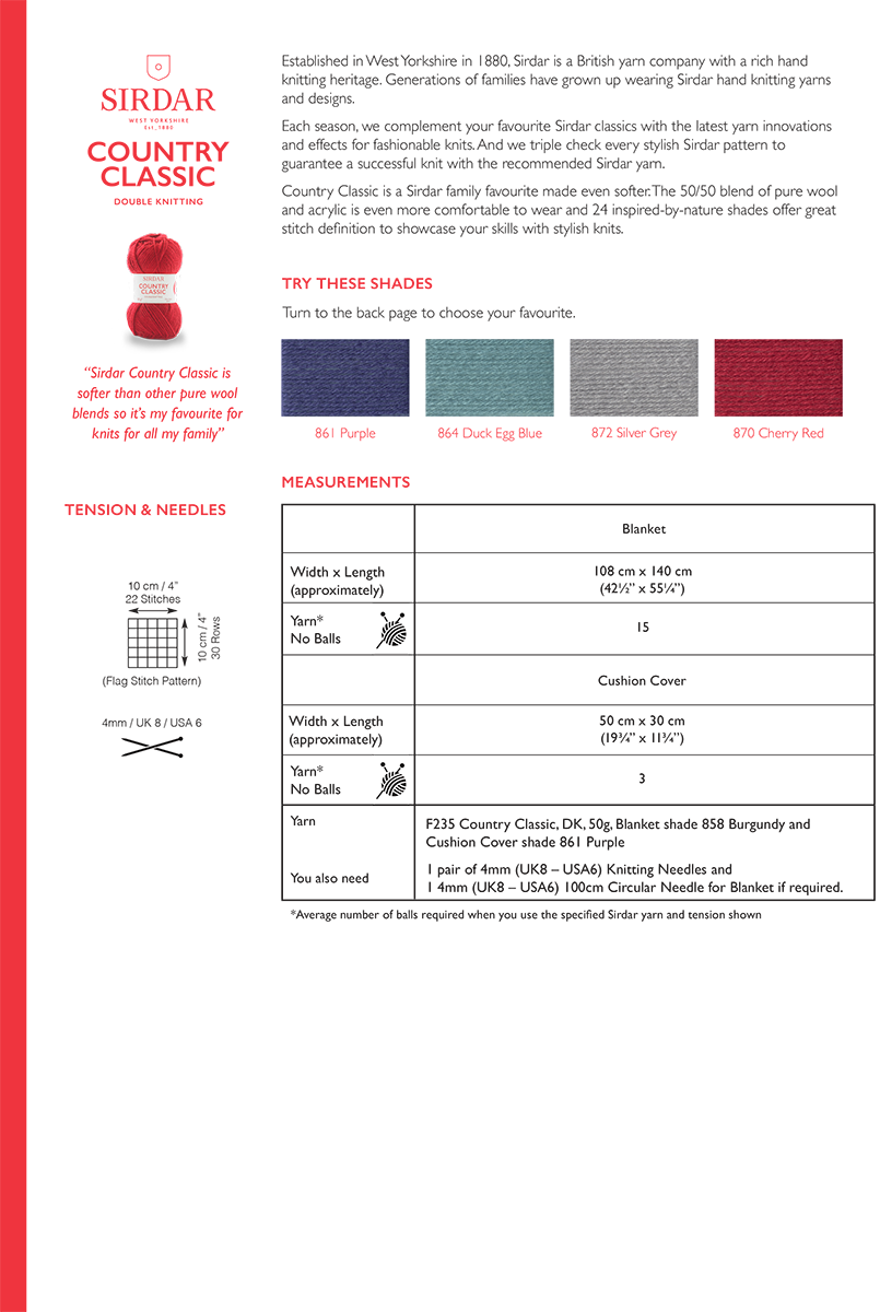 Colour Pop Blanket & Cushions in Sirdar Country Classic DK (10304) - PDF