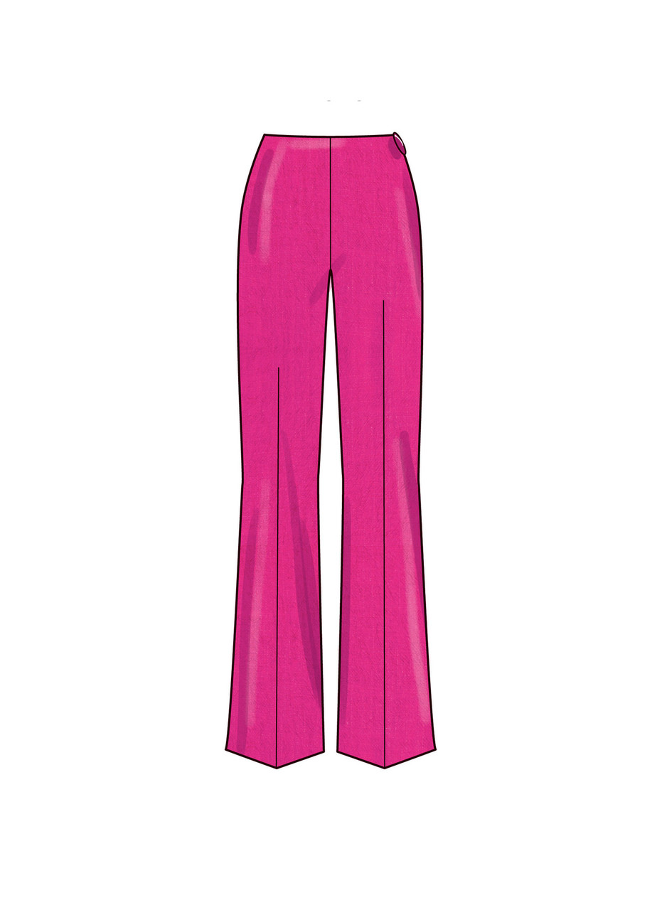 Lined corsets with sweetheart neckline have boning, curved hemline or peplum detail, optional ties and zipper closure. Corset can be made with straps or strapless. Fitted pants and skirt have back darts, invisible side seam zipper and side pockets.