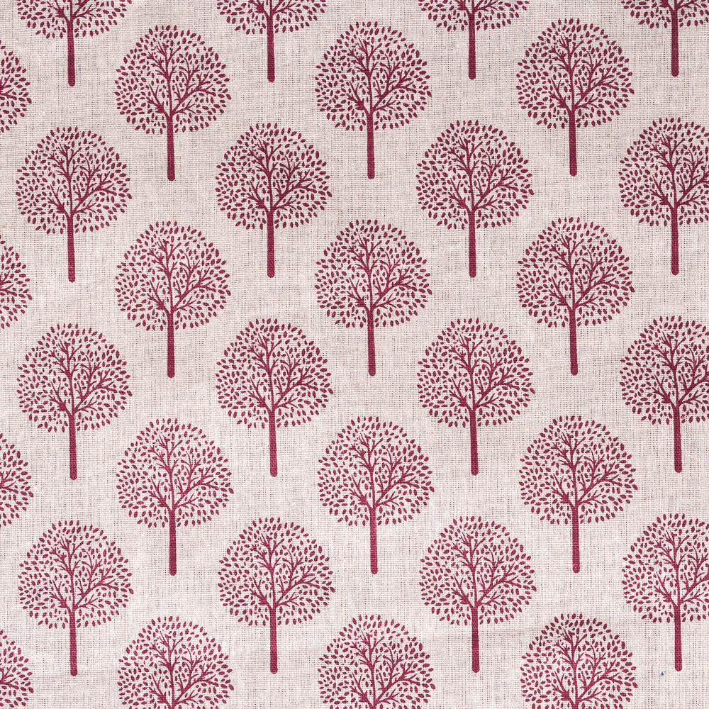 Cotton Canvas: Burgundy Oak Trees on Ecru - Per ½ Metre