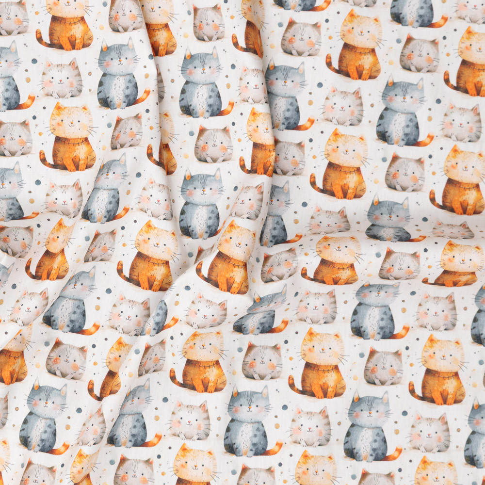 Adorable cats in tones of orange and grey on a neutral background. This cotton poplin is ideal to use in your sewing projects, such as quilting, patchwork, dressmaking, blankets, etc. It's a lightweight fabric that hangs well and has a soft feel.