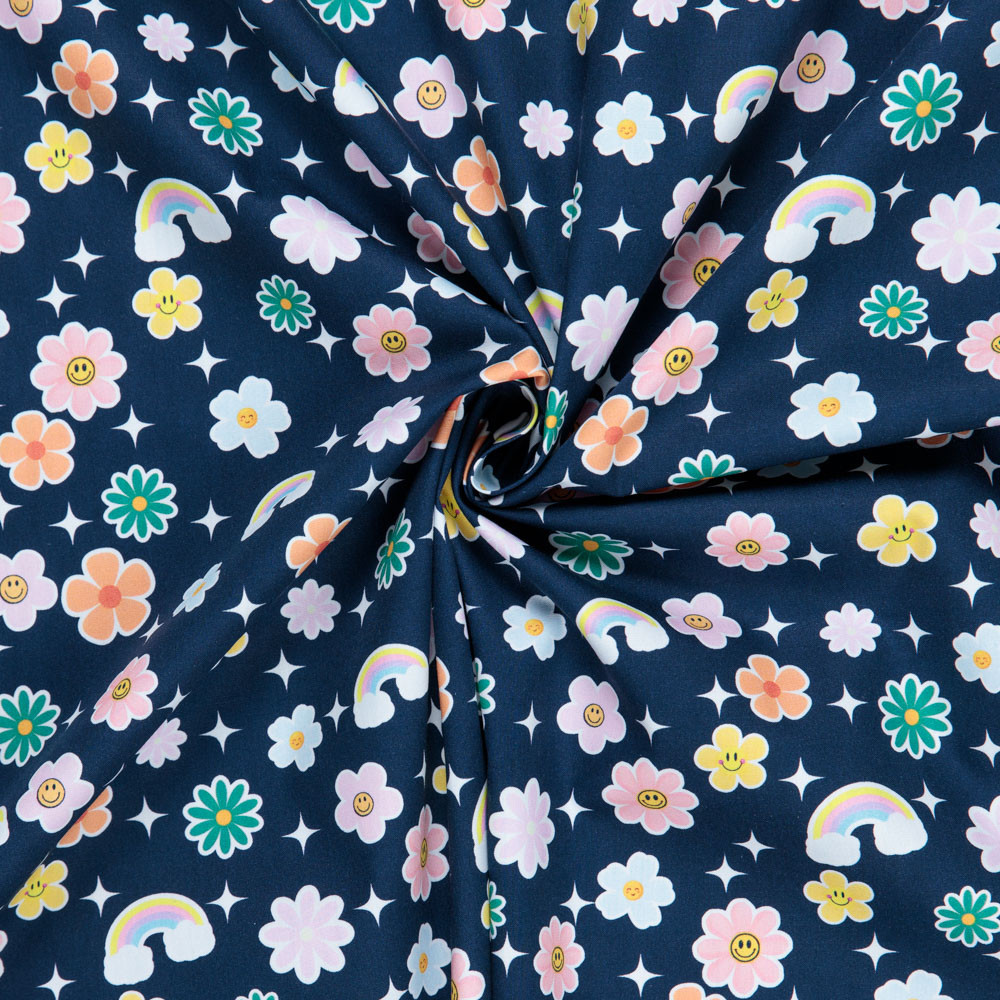 Cotton Poplin Print - Floral Rainbows on Navy - Per ½ Metre