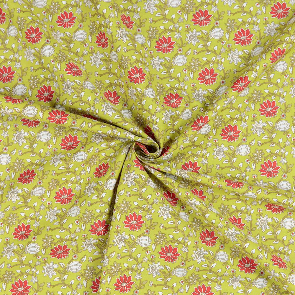 Cotton Poplin Print - Red Floral on Green - Per ½ Metre