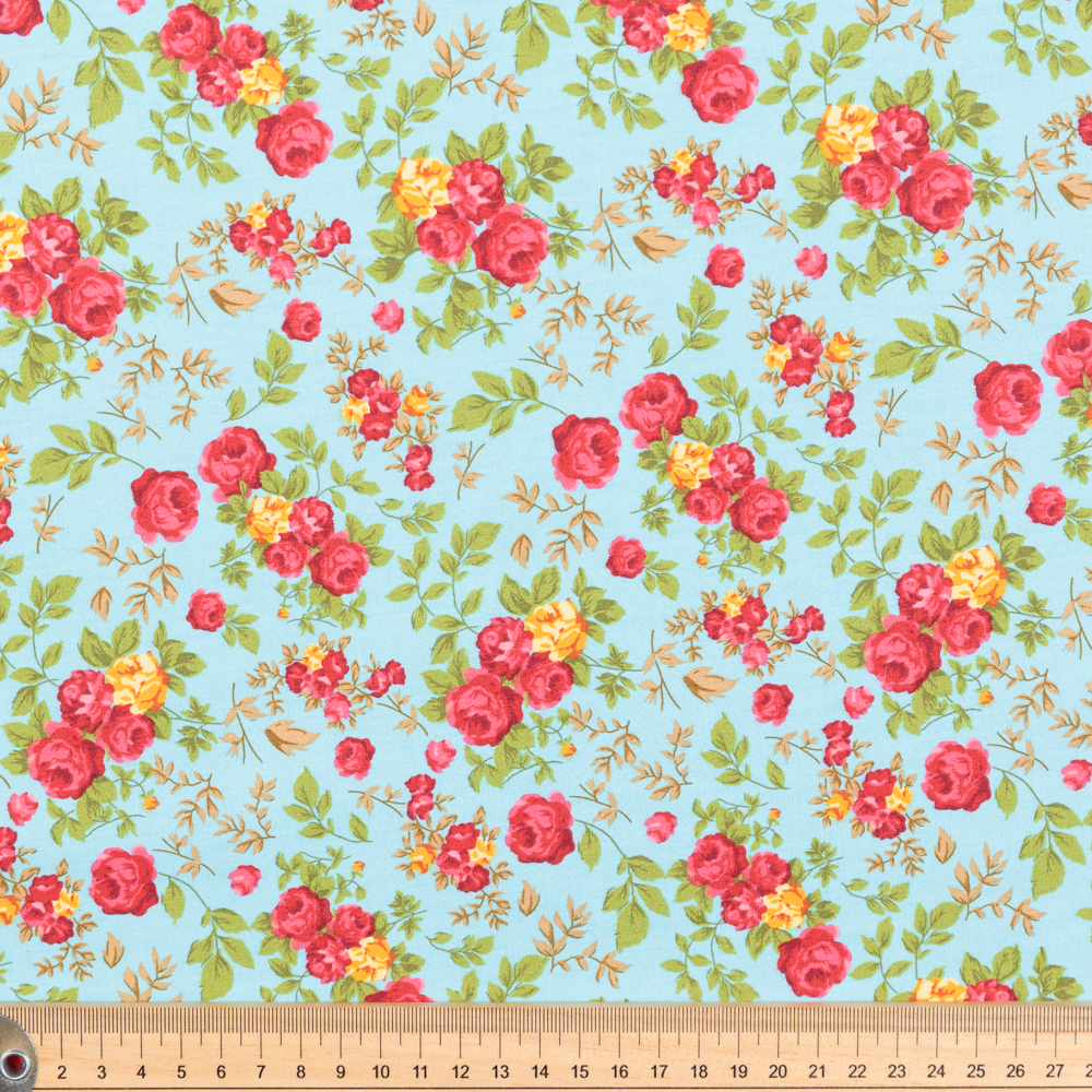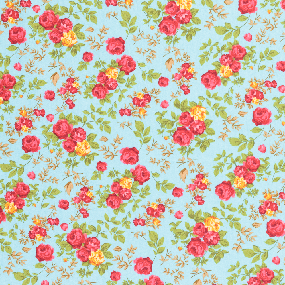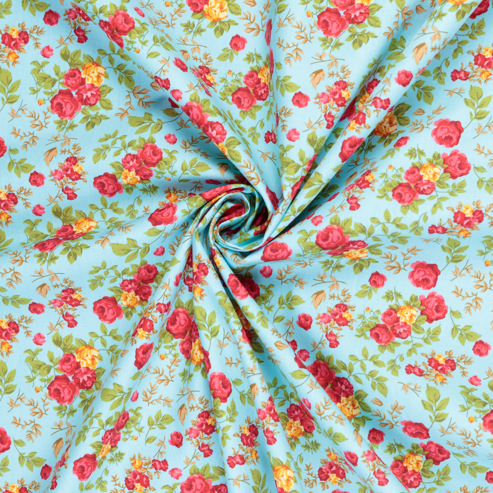 Cotton Poplin Print - Roses on Blue - Per ½ Metre