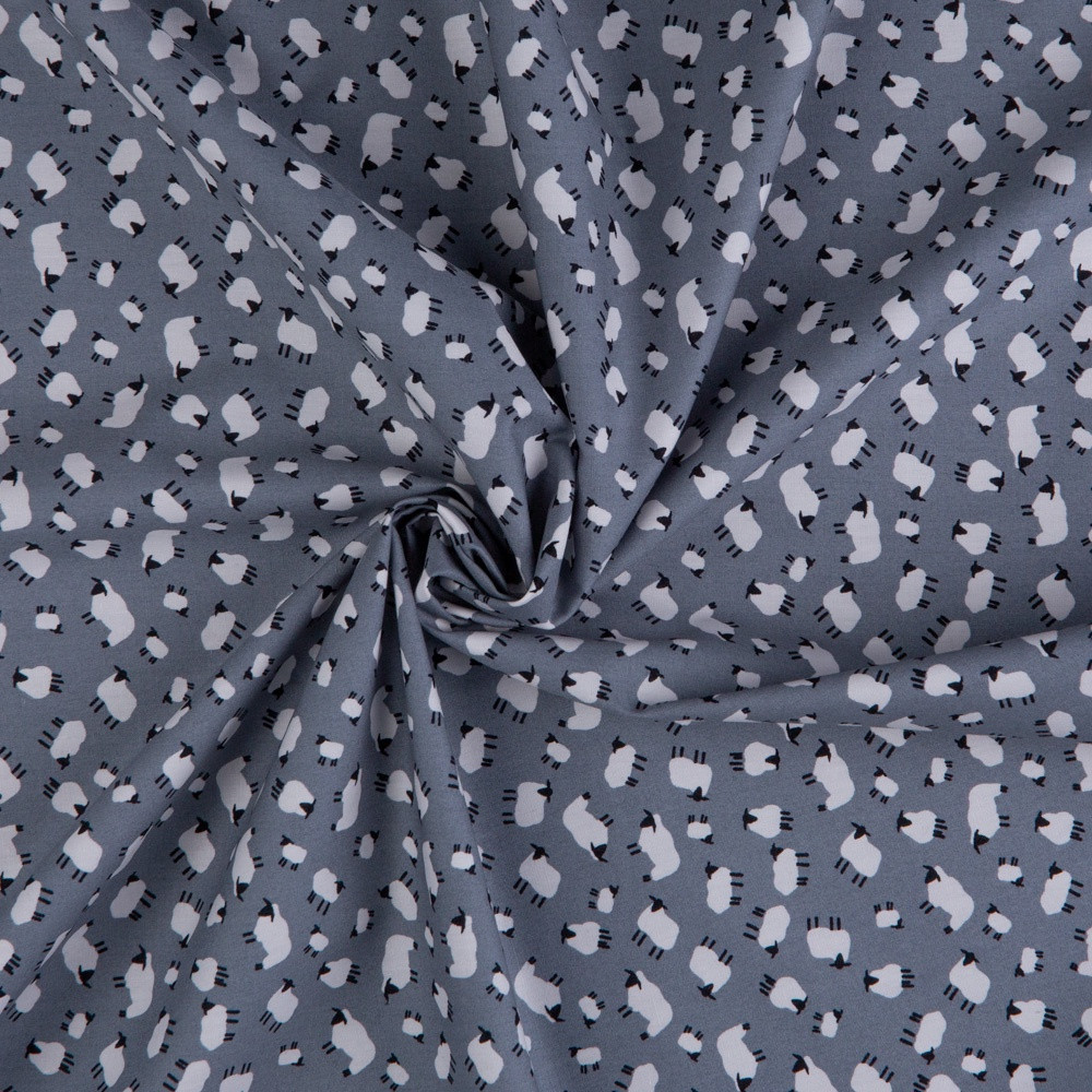 Cotton Poplin Print - Sheep (Silver) - Per ½ Metre