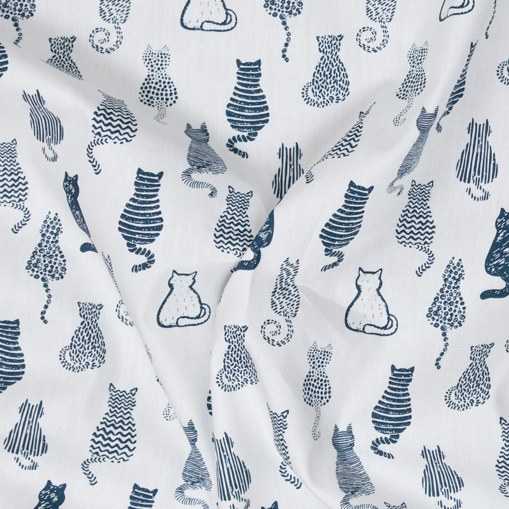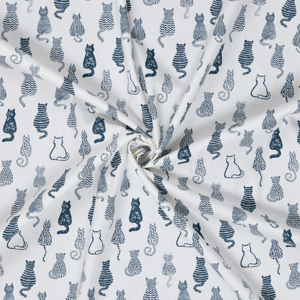 Patterned sketch cat backs on an ivory background. This cotton poplin is ideal to use in your sewing projects, such as quilting, patchwork, dressmaking, blankets, etc. It's a lightweight fabric that hangs well and has a soft feel.