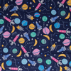 This multicoloured pastel space-themed print really stands out on its midnight blue background. This fabric is ideal for craft and clothing applications.