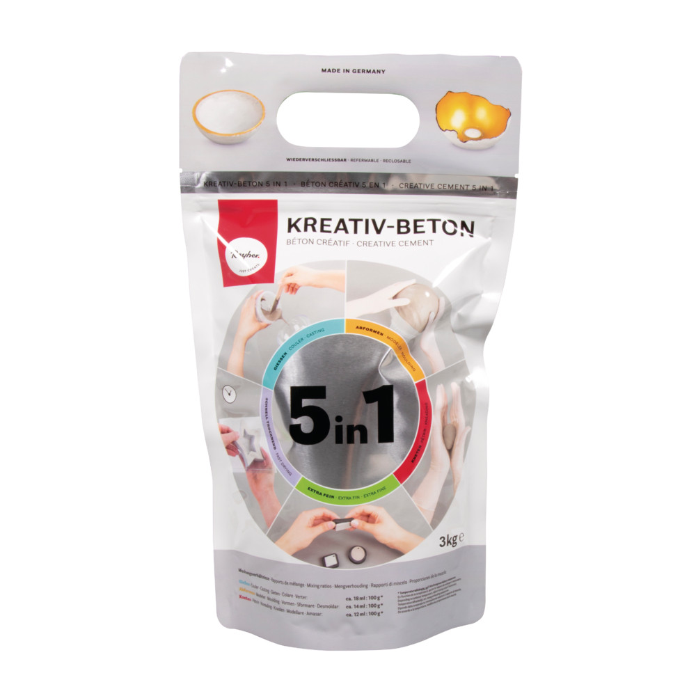 One for all! The all-rounder among the creative concrete! This concrete can be more than just “concrete”. 5 in 1 - the concrete all-rounder: casting - moulding - kneading - extra fine - fast drying.