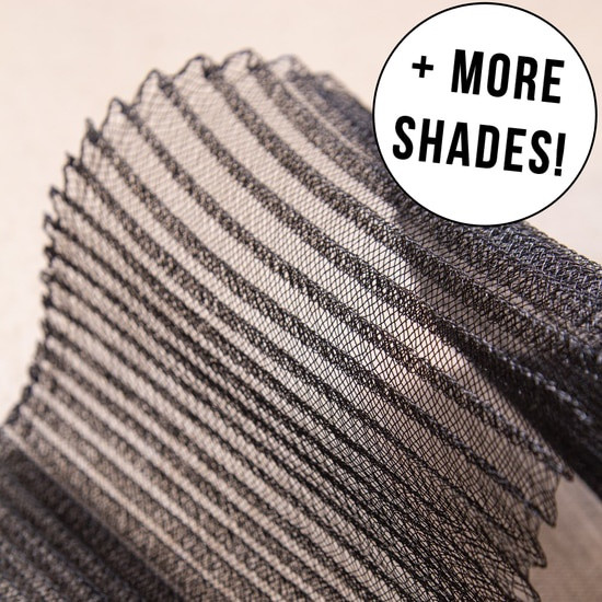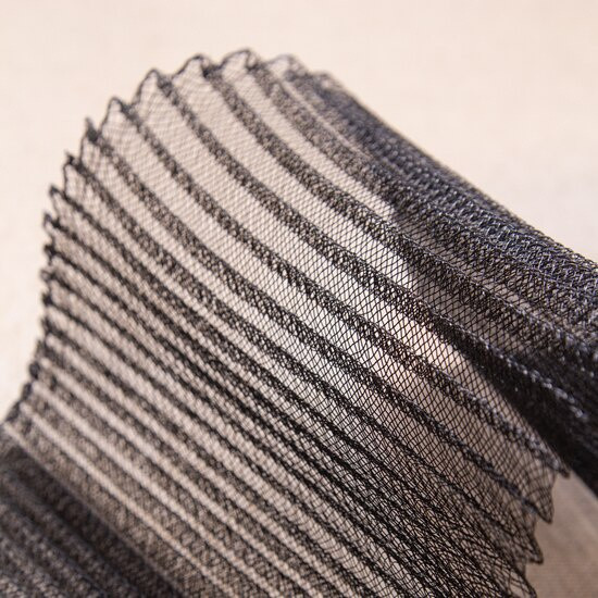 Pleated crinoline made from woven synthetic fibers it has a slight stretch and is easy to bend and manipulate into different shapes for use in your hat making projects.