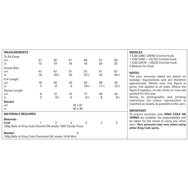 Crochet Coat & Blanket in King Cole Cherish DK (4418) CROCHET