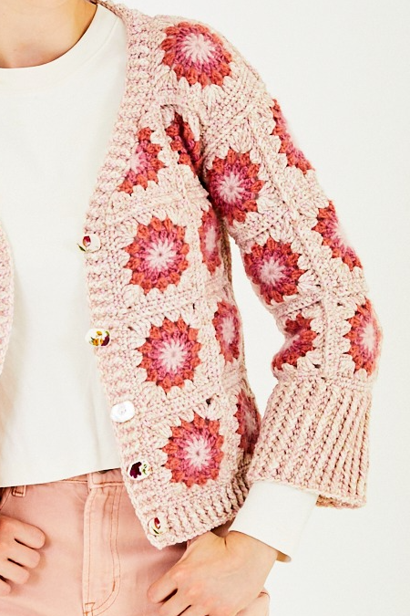 5mm (UK 6 - USA H/8) crochet hook. Stitch markers. For Cardigan: 5 buttons.