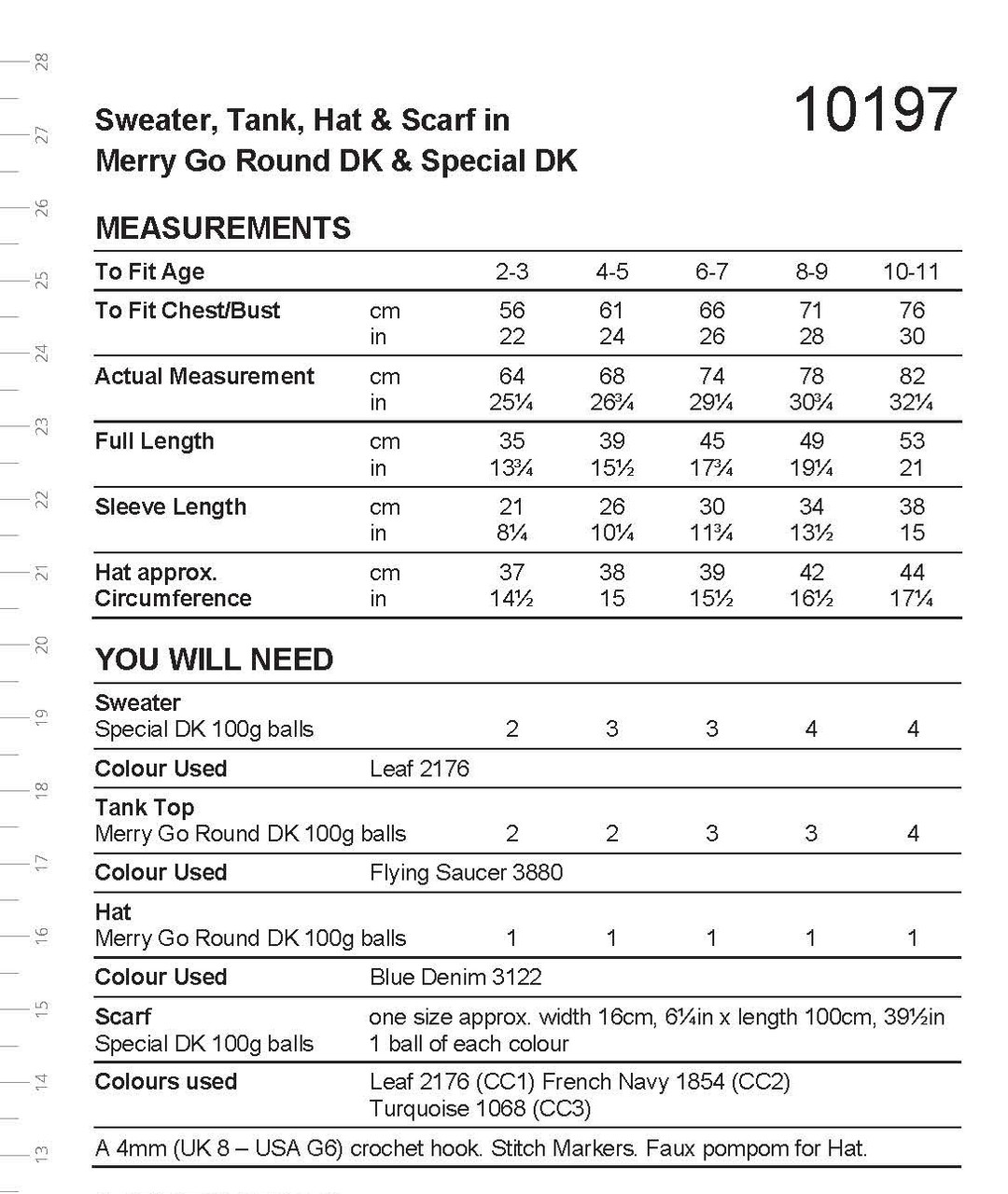 4mm (UK 8 – USA G6) crochet hook. Stitch Markers. Faux pompom for Hat.