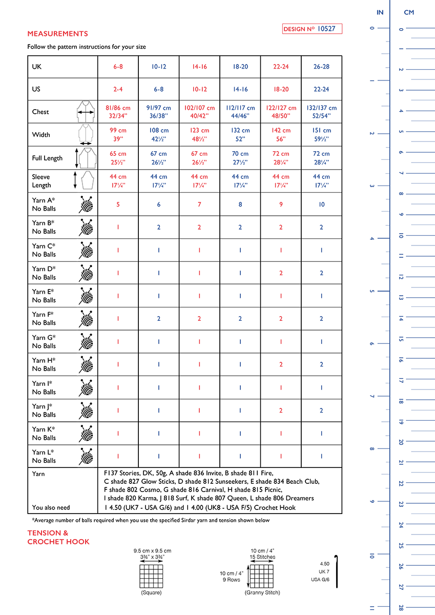 You'll never get lost in the crowd with this sweater’s fun mix of traditional granny stitches. We designed it so you’ll crochet the body in granny squares and then to create the sleeves you will stitch granny stripe. Pick your favourite Sirdar Stories shades and get crocheting!