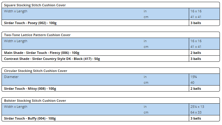 Selection of cushion covers to knit, pictured in Sirdar Touch a soft chunky fur yarn.