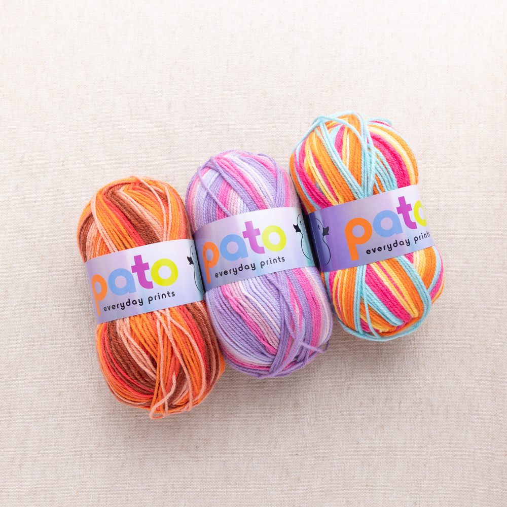 Adding to our popular budget Pato Everyday range, we introduce our fabulous Prints with its soft handle and economical value this brightly striped yarn makes for perfect colourful projects. Ideal for charity knitting, clothing, toy projects and economical knitting & crochet.
