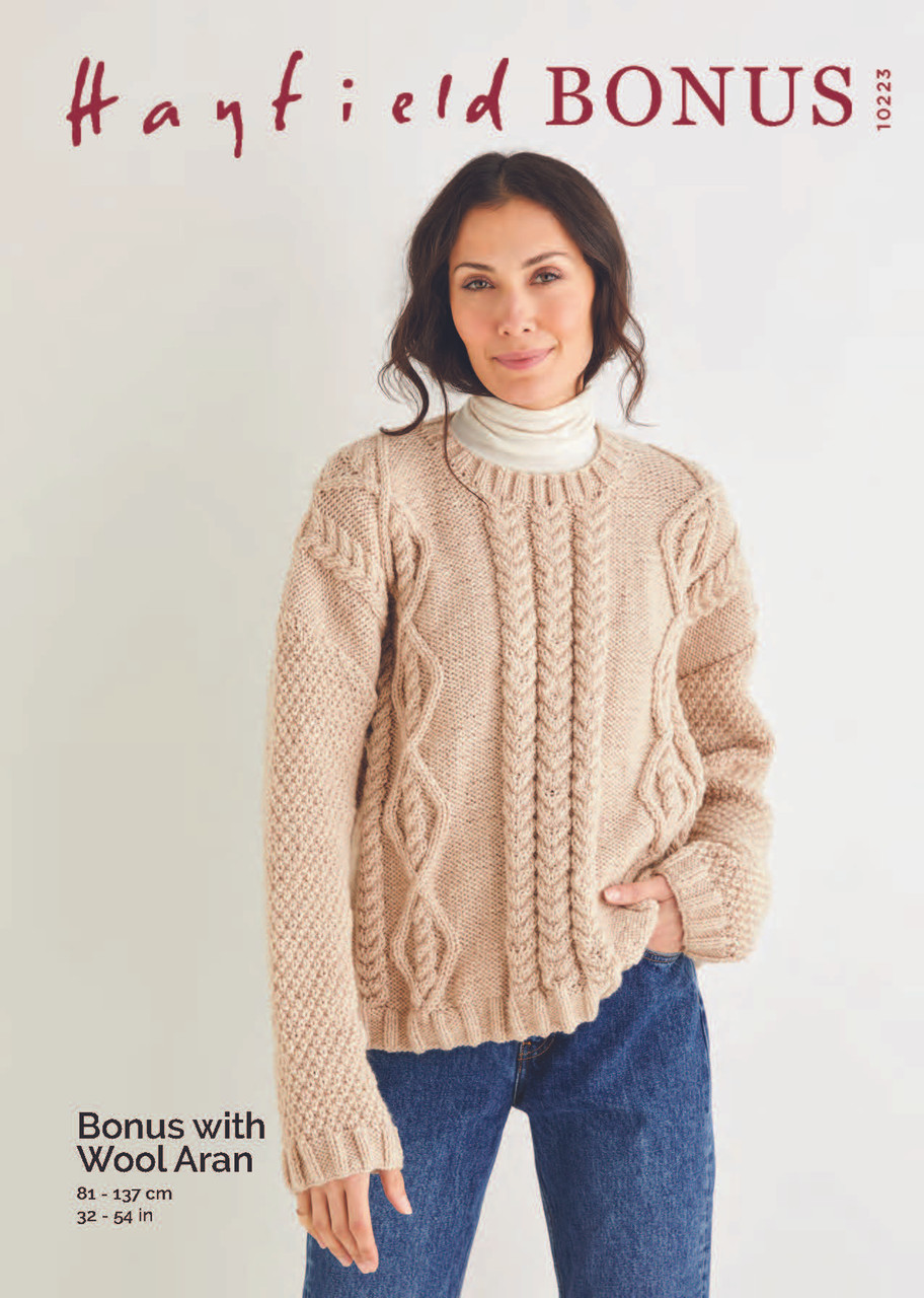 A contemporary, flattering shape in traditional stitches, this textured knit boasts a cosy crew neck, drop shoulders and a comfortably relaxed fit. Featuring a diamond and arrowhead centre panel and double moss stitch sleeves in an Aran jumper style.