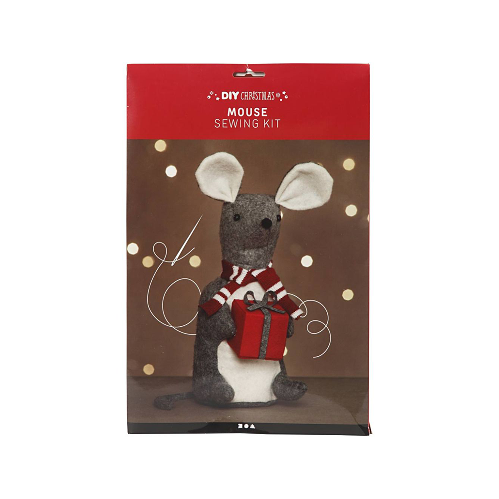 Materials set for sewing your own felt Christmas mouse. Instructions included