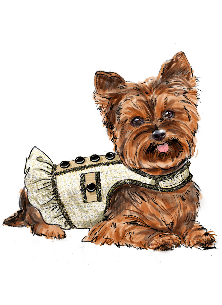 Lined padded coats designed for small and toy breed dogs have hook and loop closures and designer details. Coat with lined collar and patch pockets has self fringe and decorative button trim. Coat with back ruffle and button trim can be made with pearl-trimmed lined collar and purchased flower or with ribbon and braid embellishments. Coat sewn from prequilted fabric has contrast bow, braid trim and hand-sewn pearl accents. See envelope for sizing and more information.