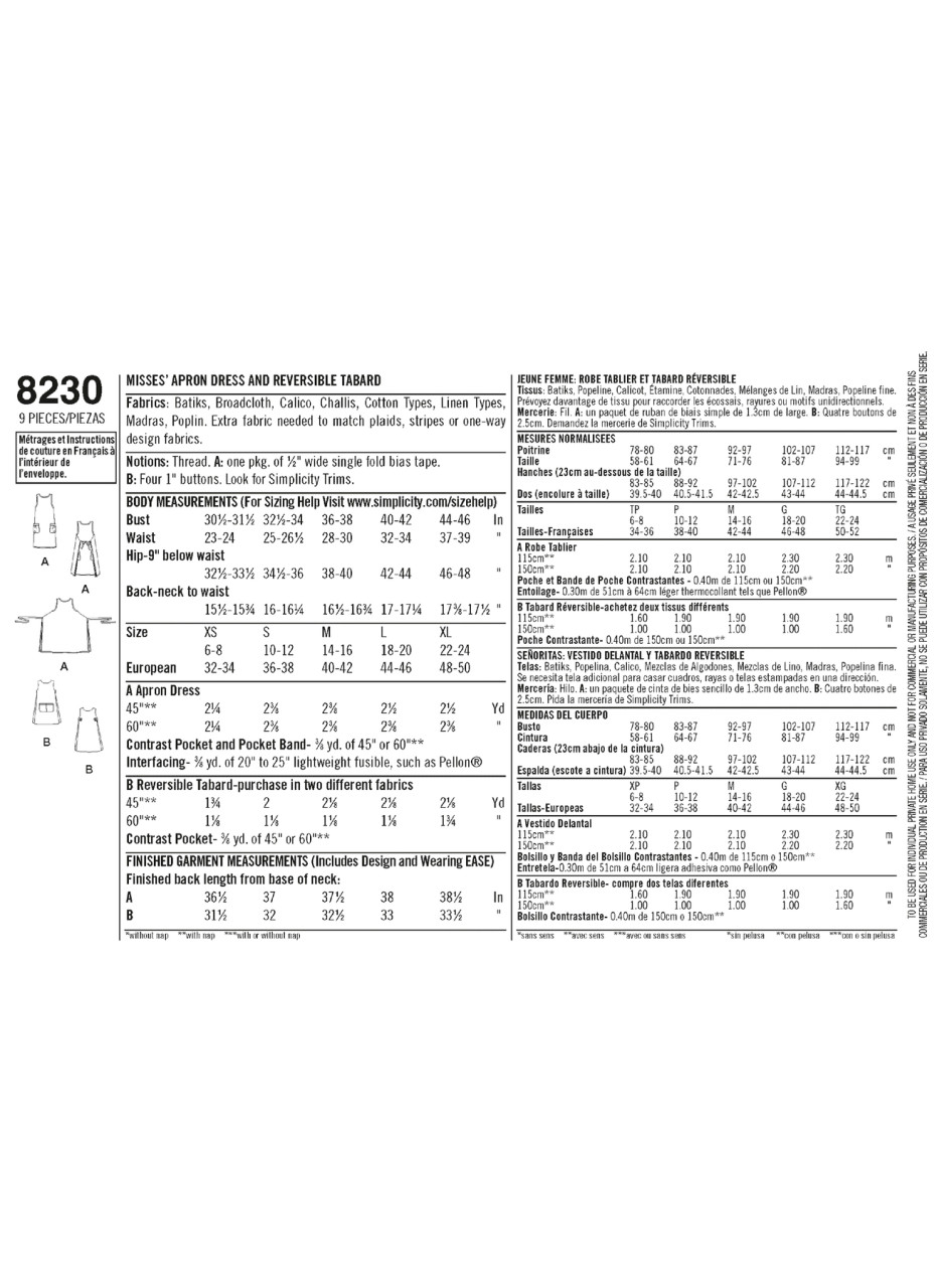 Dottie Angel Reversible Apron Dress & Tabard in Simplicity Misses' (S8230)
