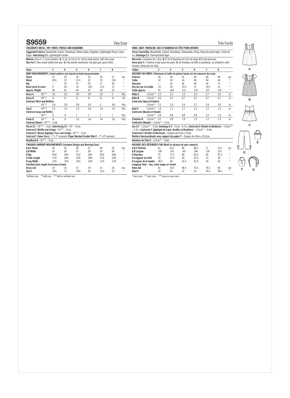 Dress, Top, Pants, Purses & Headband in Simplicity Kids (S9559)