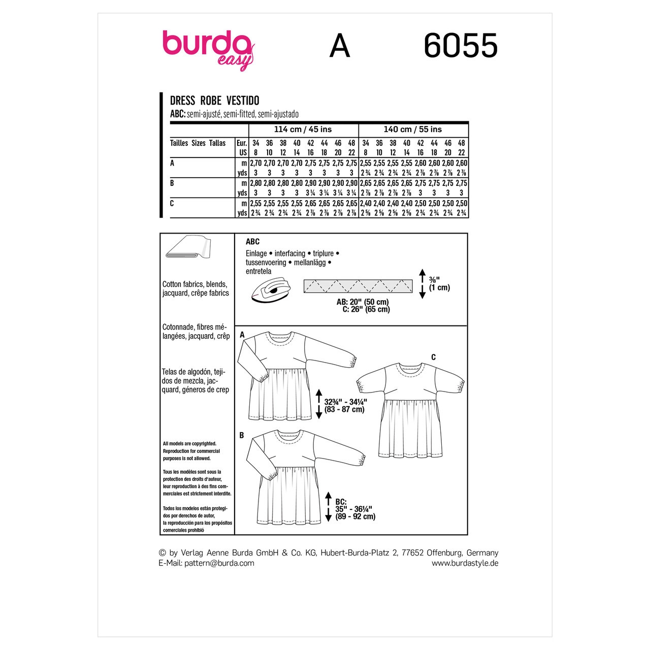 Dress w/Gathered Skirt in Burda Misses' (6055)