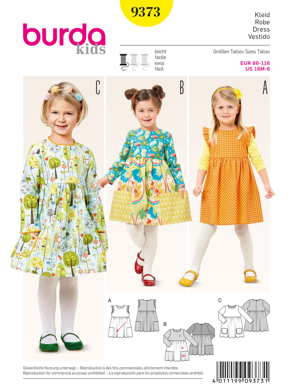 The Girl's Dress and Gathered Skirt, is a charming little dress for little girls who want to have fun. We recommend you choose plaid or print material in their favorite color. Note: Use three different fabrics for style B, to add an extra pep!