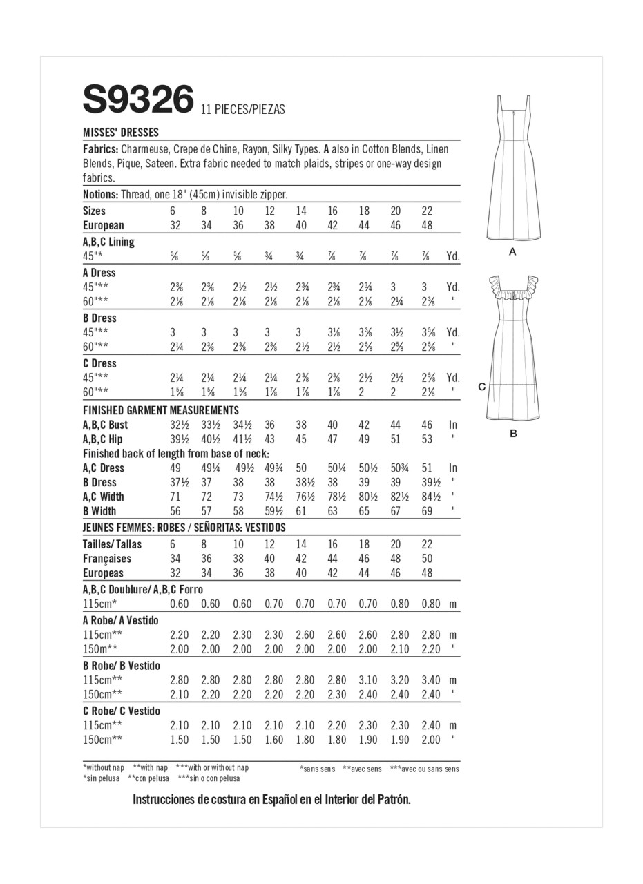 Misses' dresses with or without ruffle neckline; lined bodice; princess seams on bodice and skirt; bra friendly.