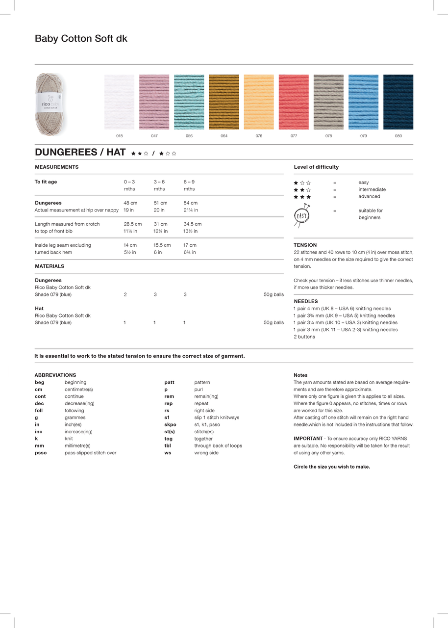 Dungarees & Hat in Rico Baby Cotton Soft DK (1166) - PDF
