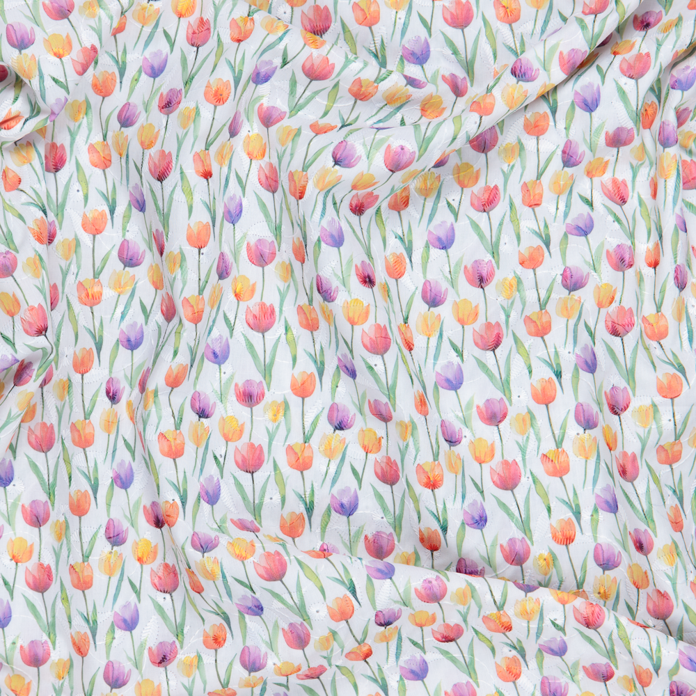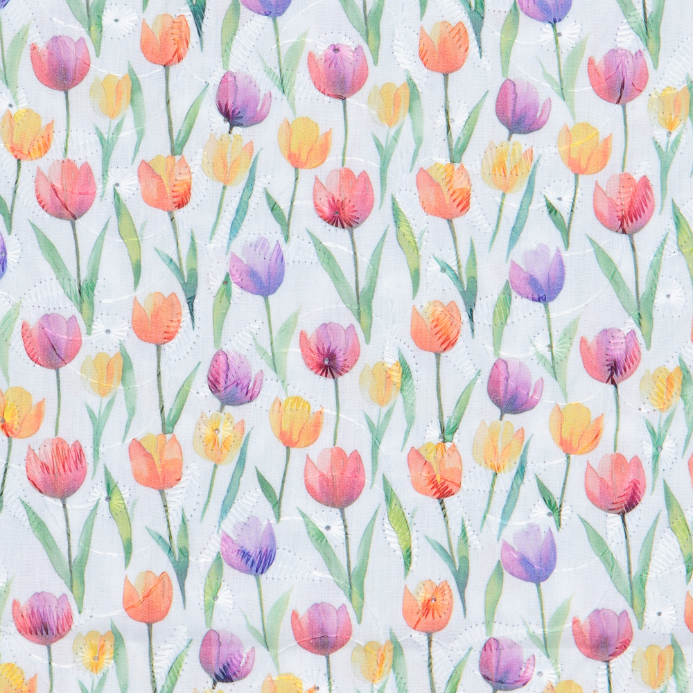 Embroidered Tulips on Cotton Mix - Per ½ Metre