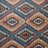 With it's bold, geometric print in blue and oranges and with a slightly textured finish, this fabric would make stunning drapery, light upholstery or pillow covers. Make use of it's extra wide width! We can also see funky jackets and mid-season coats paired with with jeans. Opaque, a lining may be added for additional comfort.