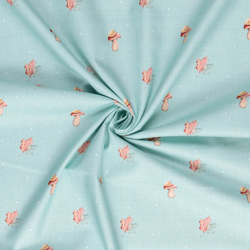 Premium organic cotton prints designed by Mari Caliart featuring beautiful water coloured autumnal images, such as leaves and mushrooms. Beautiful, high quality, printed cotton fabric. Ideal for quilting, masks, crafts, displays, table decoration and as a dressmaking fabric.