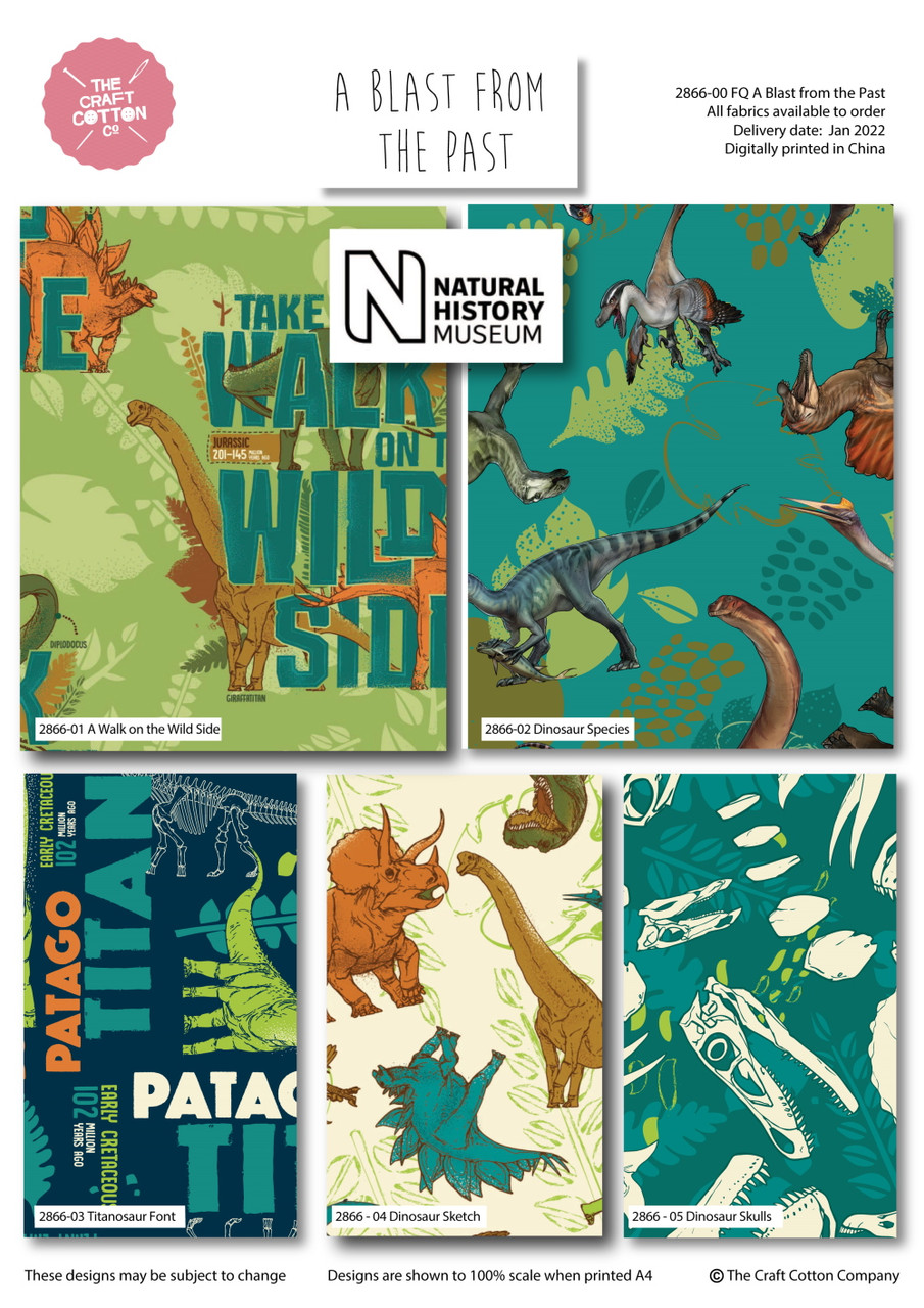 “Fat Quarters” : Blast From The Past – Natural History Museum – Printed Cotton Packs