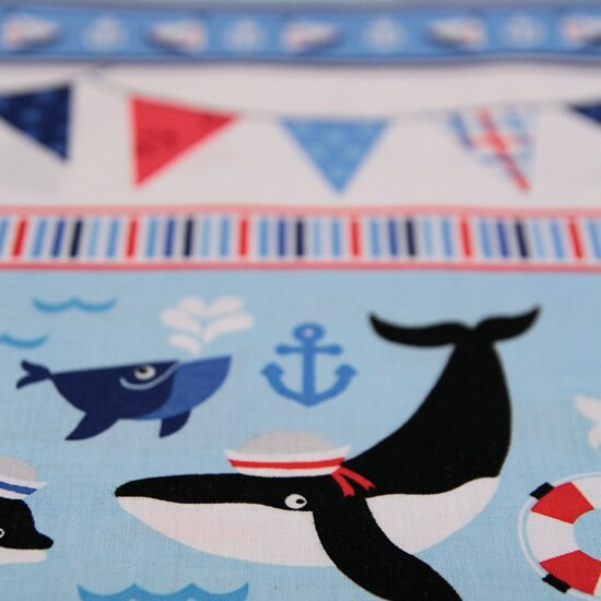 This playful and fun ocean themed fabric is of a high quality and hangs well. It's perfect for many projects, including quilting, patchwork, dressmaking, bunting and cushion covers.