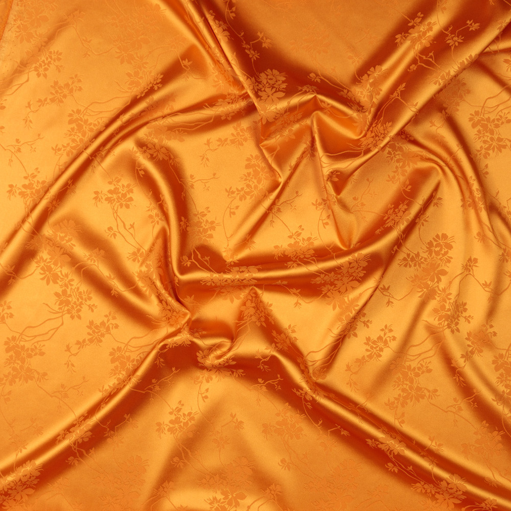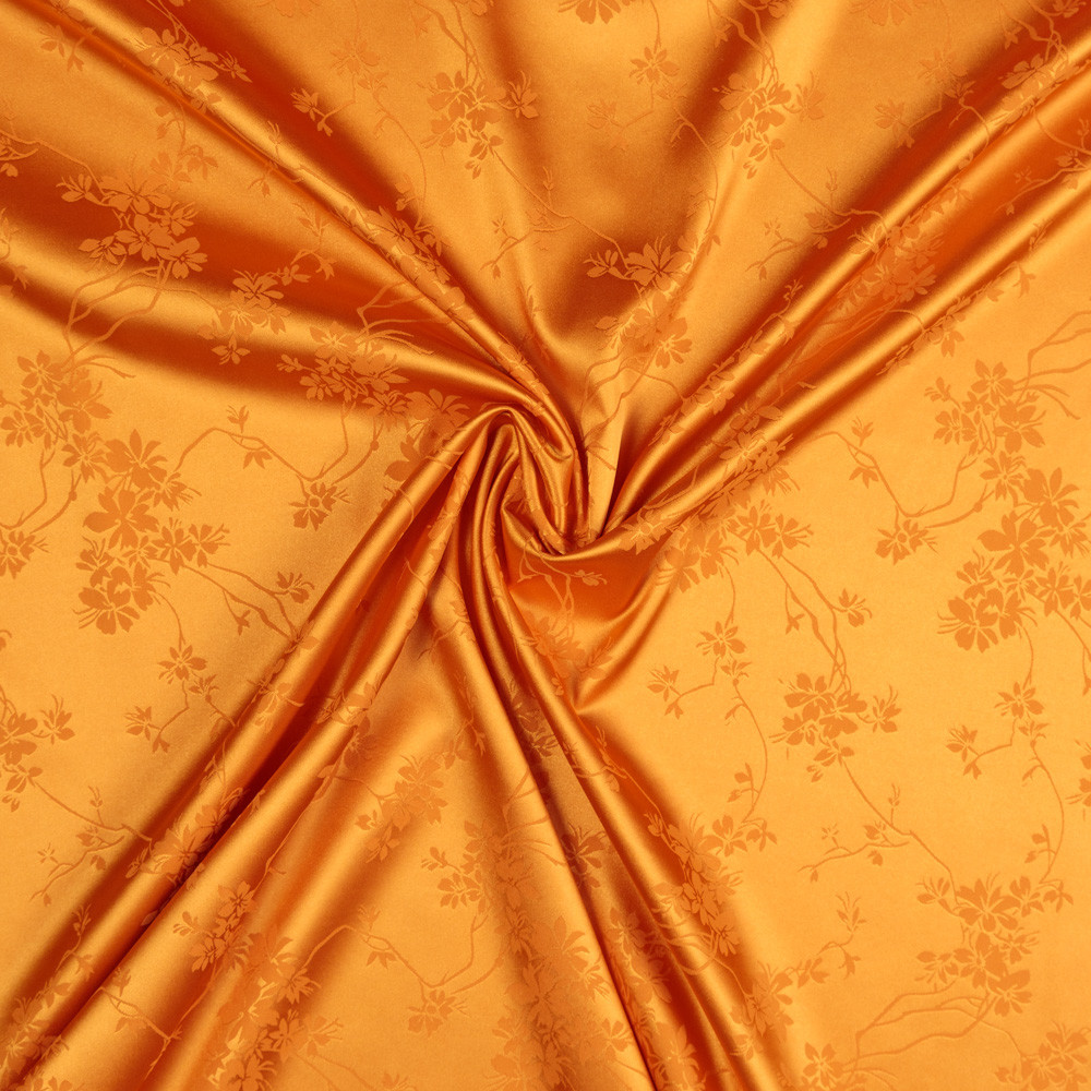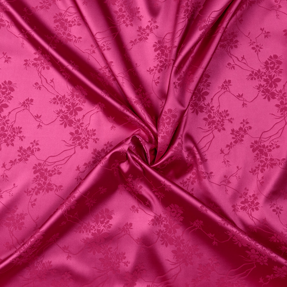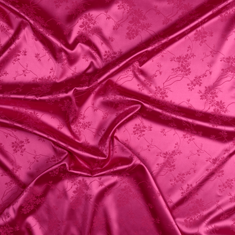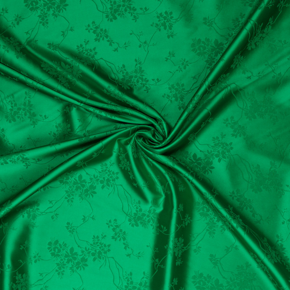 A subtle matte stitched garden blooms over this Floral Stretch Polyester Satin-Faced Jacquard. The jacquard weave produces embroidered-like flowers, depressed into the slick, satin-faced background. Create elegant evening gowns, capitalizing on the supple drape of the fabric, or fashion dress pants, focusing on the comfortable 10% weft-wise stretch. Mostly opaque, a lining may be necessary for an added professional look.