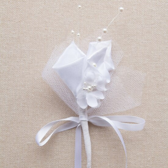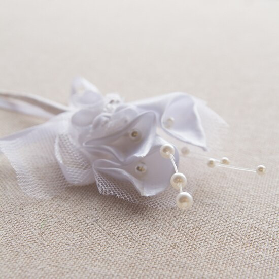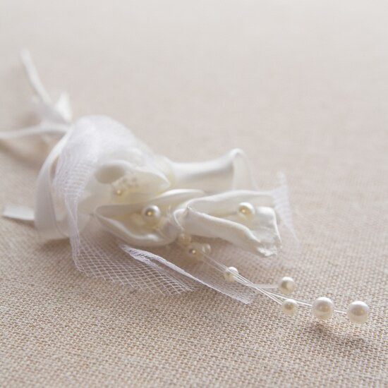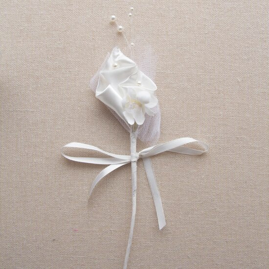 This mini bouquet would be perfect in hat making or floristry. Available in two different shades, they feature a fabric flower with tulle and pearl embellishments. You could place them in a larger wedding bouquet, or use them tied up in napkins for place settings at a wedding afters. Use in fascinator projects by winding the wired stem around other items or just cutting off top part and attaching with a hot glue gun.