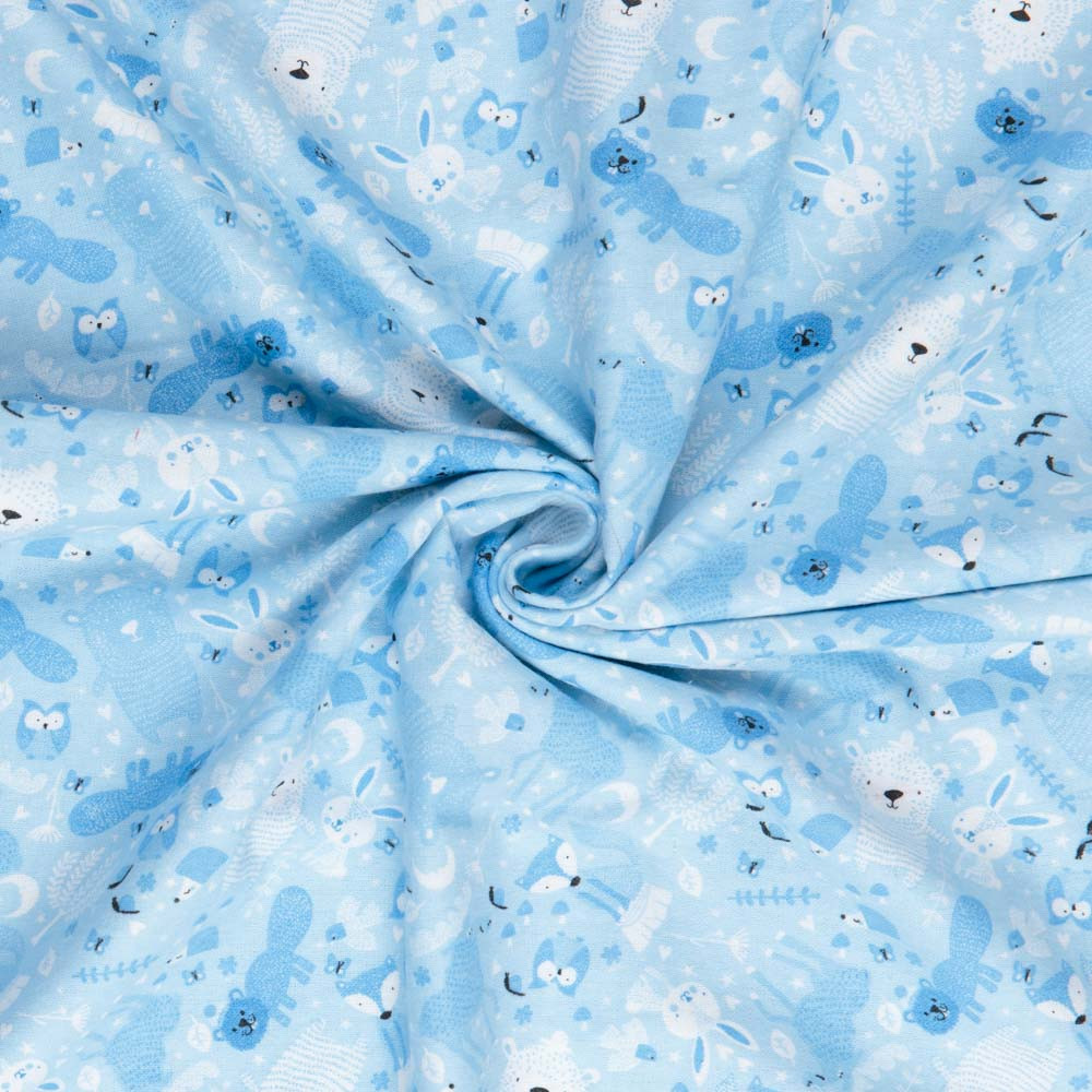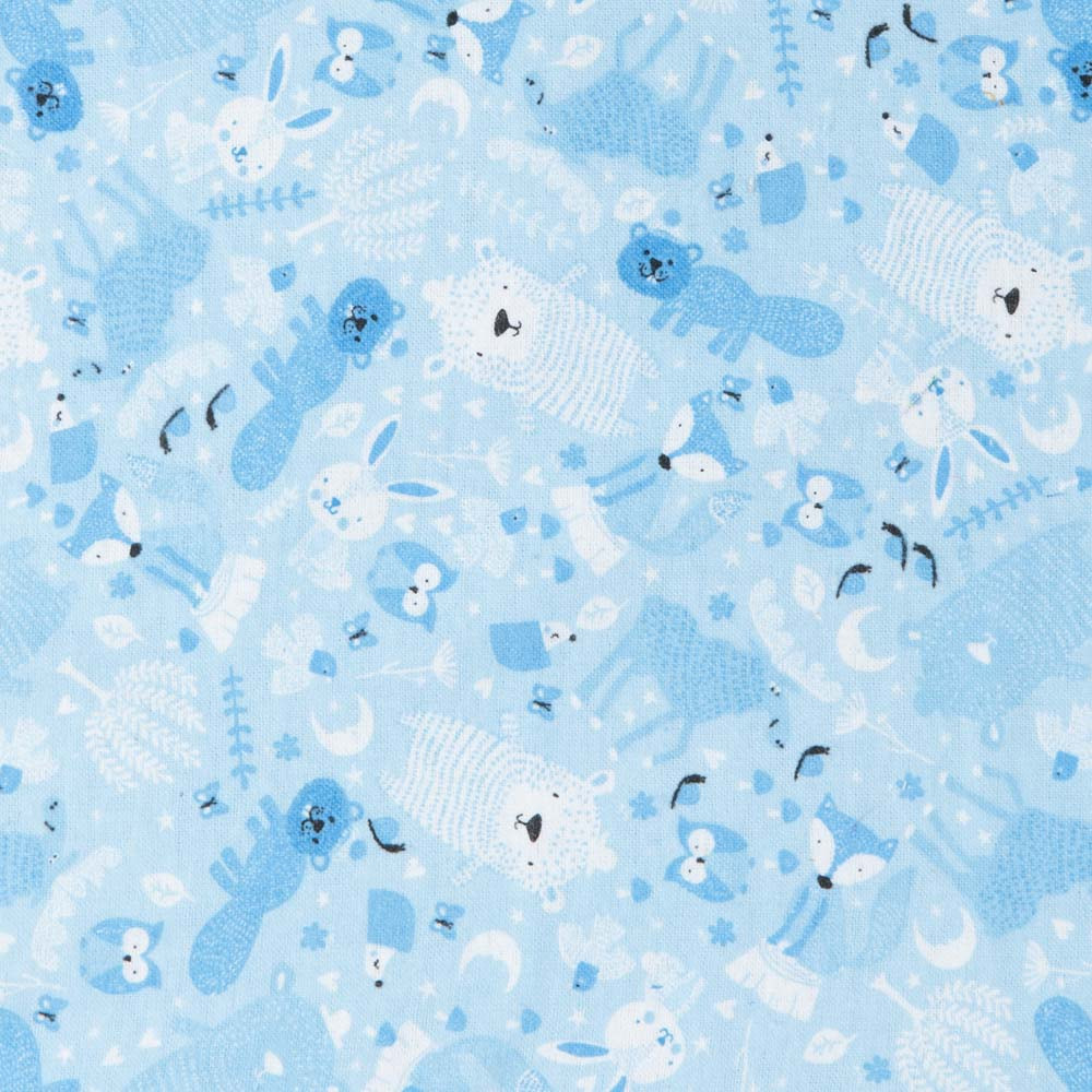 Super cute animals in tones of white and blue in a cotton flannel on light blue. Beautiful, high quality, printed cotton fabric. Ideal for quilting, masks, crafts, displays, table decoration and as a dressmaking fabric.