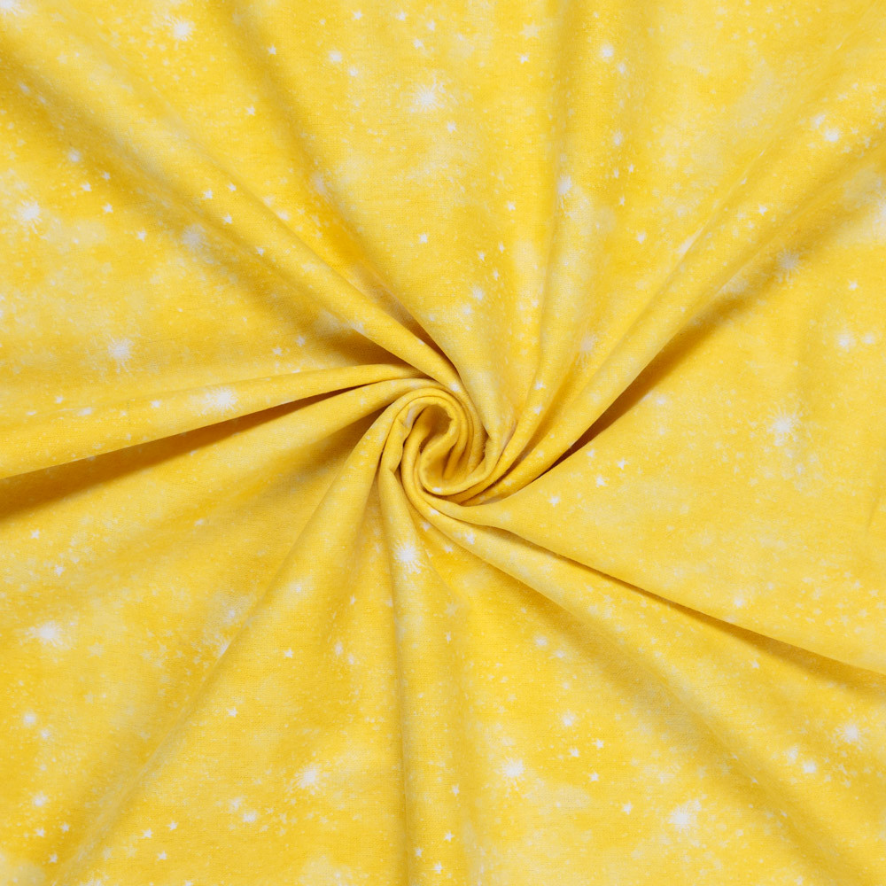 This 100% cotton flannel is super soft and features white starry and cloudy sky on a yellow background. Beautiful, high quality, printed fabric. Ideal for quilting, masks, crafts, displays, table decoration and as a dressmaking fabric.