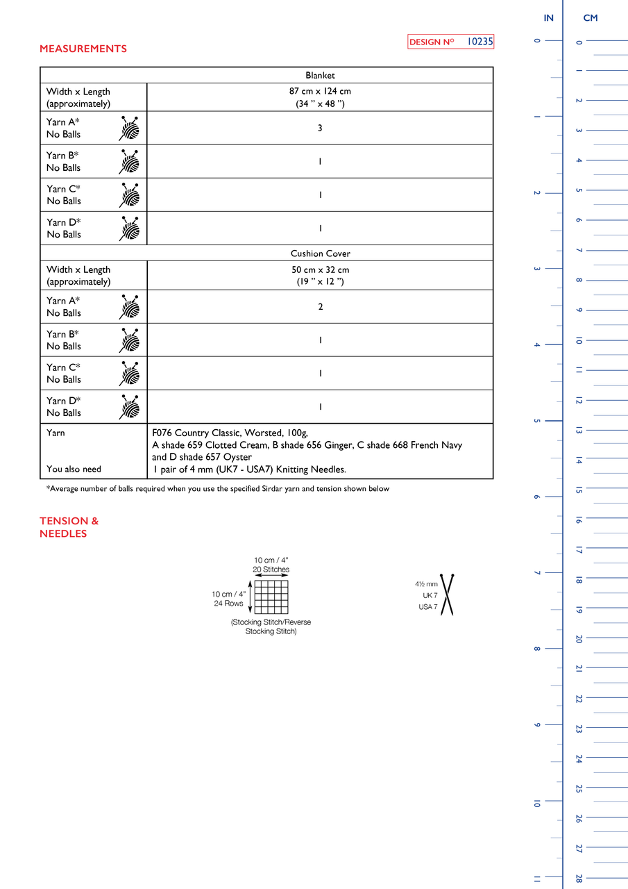 The heroes of our Moroccan home collection, this co-ordinating blanket and cushion in Sirdar Country Classic Worsted are inspired by the colours and shapes of a traditional Moroccan town. The geometric colour-work is given added depth by textured stitches in the same shapes for a project that’s fun to knit and will make a fashionable addition to your home.