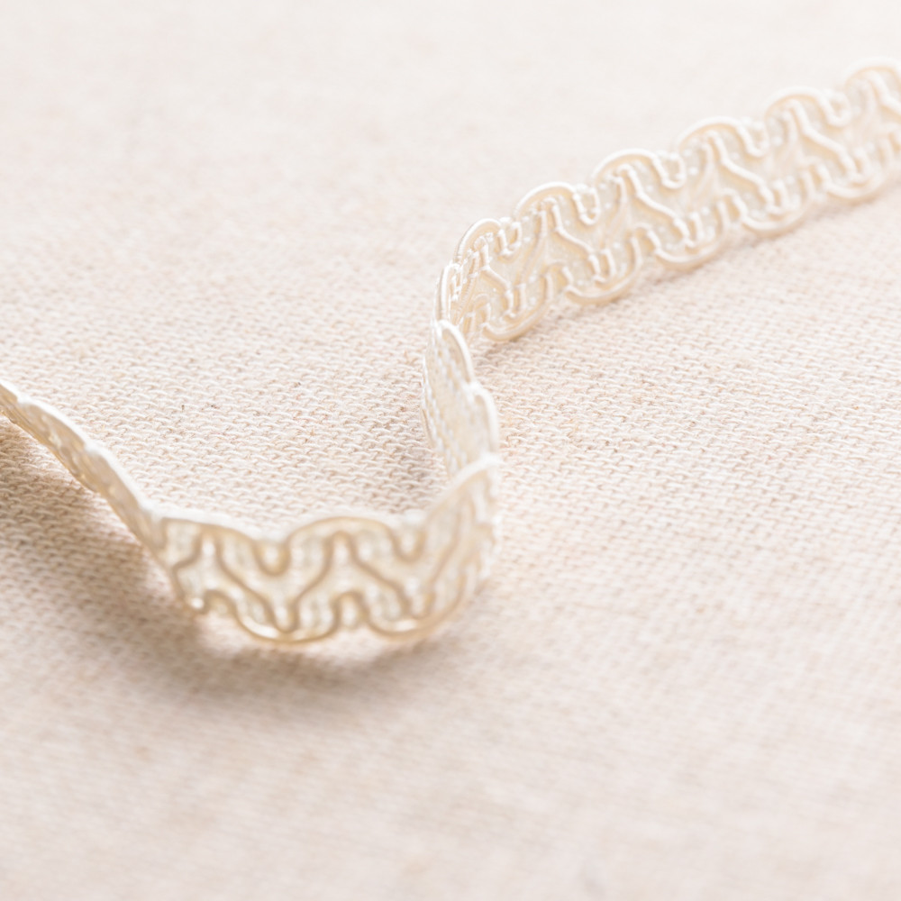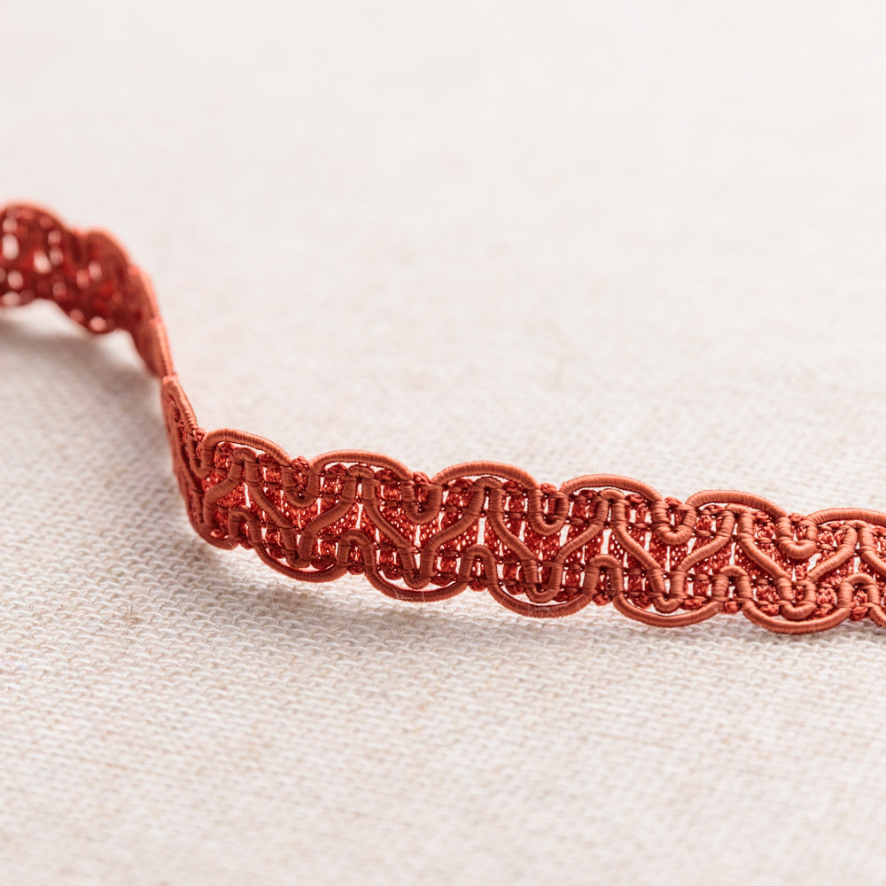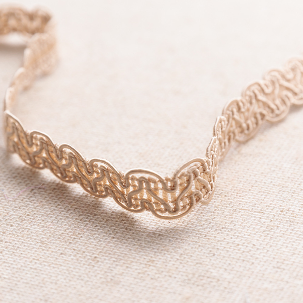 Fluid and dynamic, our Gimp Braided Trim will inspire your most stunning designs. Cords moving in a sinuous wave pattern create this simple yet elegant design. With plenty of bendability, creating with this trim is a breeze. Measuring 1.5cm wide, apply to home furnishings such as drapery and upholstery, decorate jackets and coats, or get crafty by adorning purses and hats!