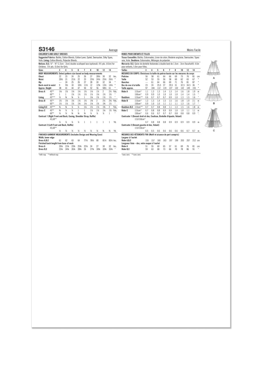 Lined halter dresses have front and back gathers, tiered hem, neck band with ties and side seam pockets. Views B and C have optional scalloped lace trim. View C dress has contrast. Purchase sizes separately.
