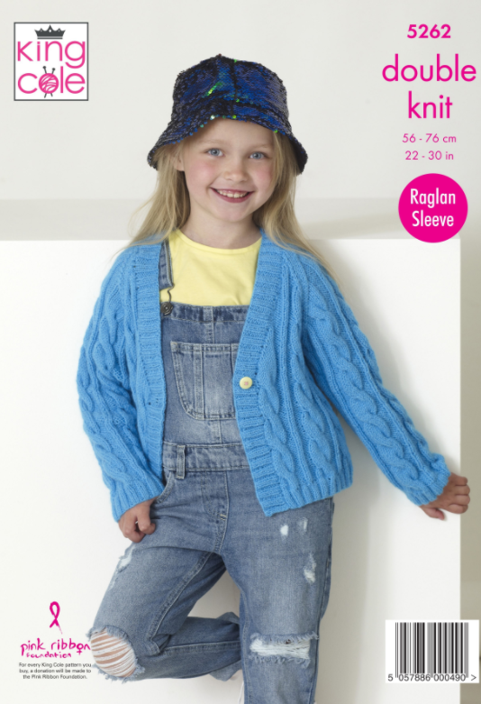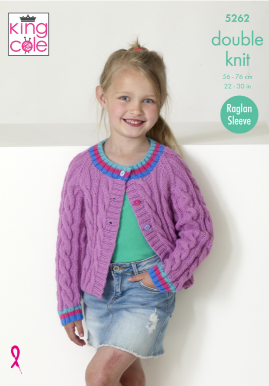 Girls Raglan Cable Cardigans in King Cole Big Value DK (5262)