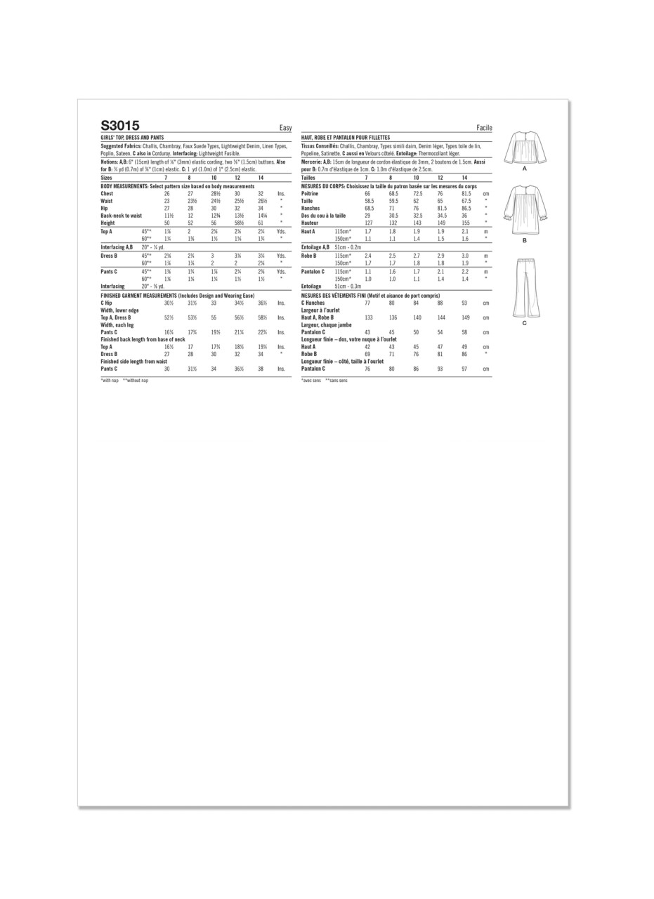 Girls' Top, Dress & Pants in Simplicity Kids (S3015)
